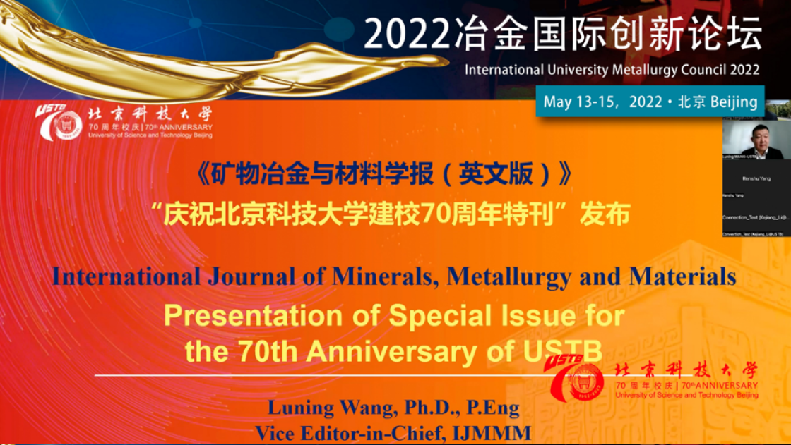 副校长、《矿物冶金与材料学报(英文版)》(IJMMM)副主编王鲁宁作开幕式特邀报告,宣布校庆特刊的发布。特刊由中国科偷拍 院士徐冠华作序,并邀请了全球矿业工程、冶金工程、材料科学与工程领域28位院士和高水平学者就相关领域的发展前沿、研究现状、技术挑战、创新成果与未来展望进行研究和综述。与会嘉宾与我校师生、期刊读者和作者们共同见证了学校70年成长壮大的辉煌历程。
