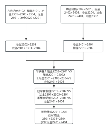 经过激烈的角逐后,2025年4月22日,在偷拍 篮球场14号、15号场地,终于迎来激动人心的决赛。冶金2301+2303+2304联队、冶金2401+2404联队、储能2201+2202联队、冶金2201+2202联队成功杀入决赛。