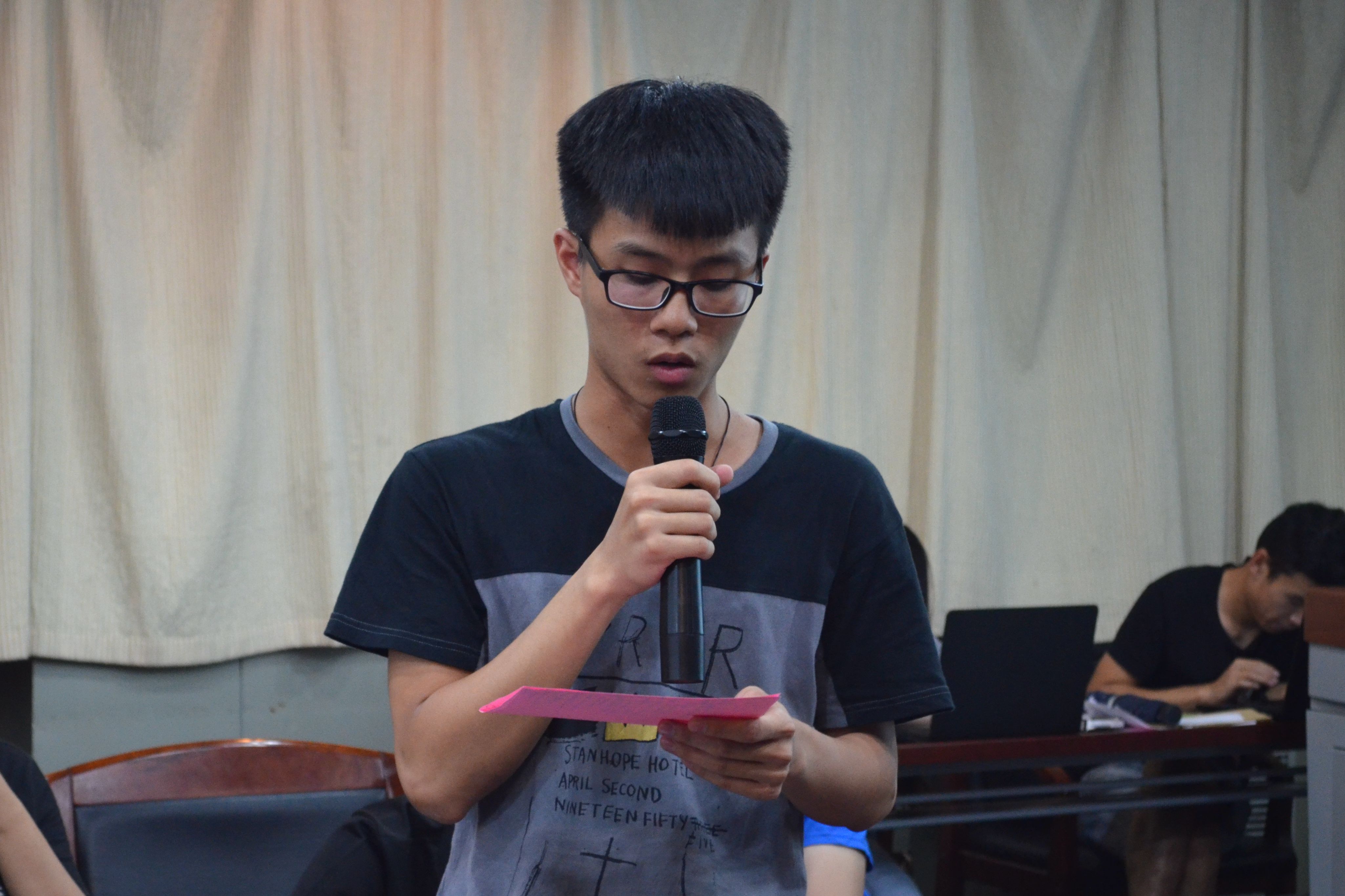 在接下来进入模拟实战环节中,学生骨干分别就《“钢铁摇篮”文化节系列活动的宣传推广方案》、《飞机失事后求生的15件物品》等题目进行了讨论,学生骨干们积极思考,新奇观点百出,时而引得在场观众捧腹。尽管初期讨论过程曲折多变,但确立了大致方向后,成员们都踊跃参与,出谋划策,最终得出了一份份较为完备的讨论方案。