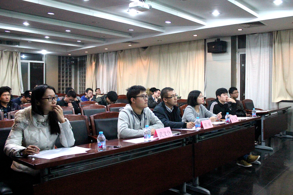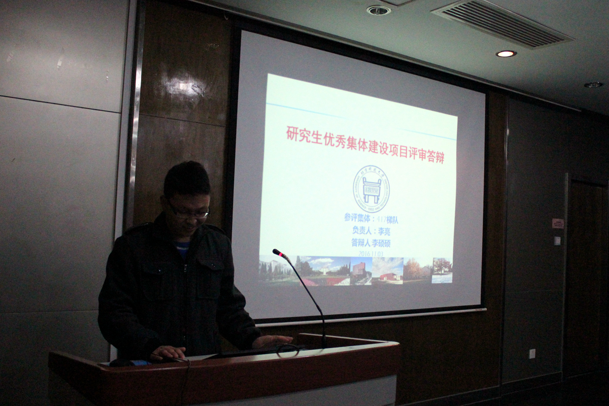 偷拍 学生工作办公室主任、研究生辅导员李元坤老师宣读了《2016年研究生集体建设项目评审标准》。