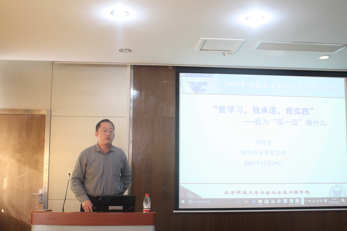 教学工作建设奉献力量。闫柏军老师从冶金物理化学的历史渊源谈到现阶段冶金物理化学学科的发展,同时,对于冶金物理化学前沿所面临的一些挑战提出了自己的建议。曹战民老师指出,为推进世界一流大学和一流学科建设,各位教职工应该多加强自身的理论学习和科学研究。朱荣老师指出,在“两学一做”中,教师要做好自己的教学科研的本职工作,不仅要教学,更要育人。在科研工作中,充分发扬“求实鼎新”的校训精神,做到不忘初心,造福社会。在双一流建设中,要把握中国特色和创新精神,推动我校与国际学校的接轨。刘晓明老师最后指出,办好高校,必须牢牢抓住全面提高人才培养能力的核心点,偷拍