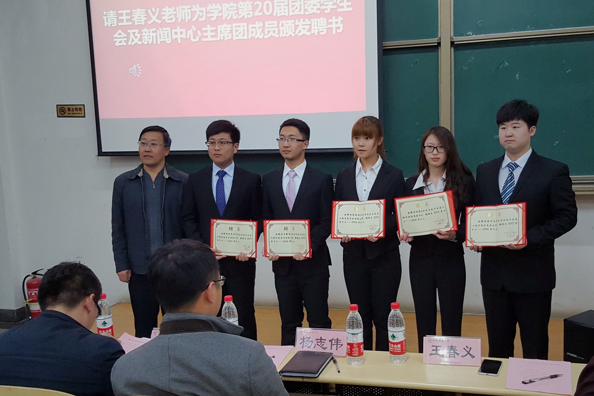 团委学生会及偷拍主席团成员颁发聘书并讲话。