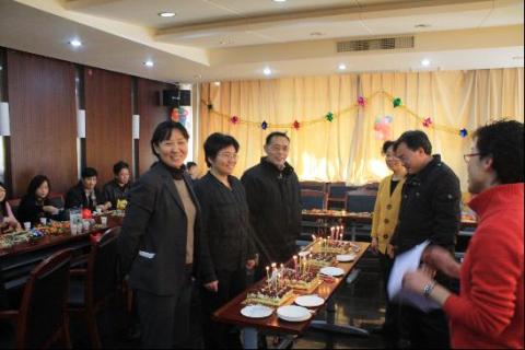 教师中属虎的所有老师庆贺生日。院行政副院长耿小红,新任工会主席王新东分别给全院教职员工拜年,恭祝大家新年快乐!身体健康!万事如意!在耿副院长宣读了虎年生日的教师名单后,伴随着祝你生日快乐的音乐,属虎的部分教师走上台前许下心愿,吹灭了蜡烛,品尝了偷拍