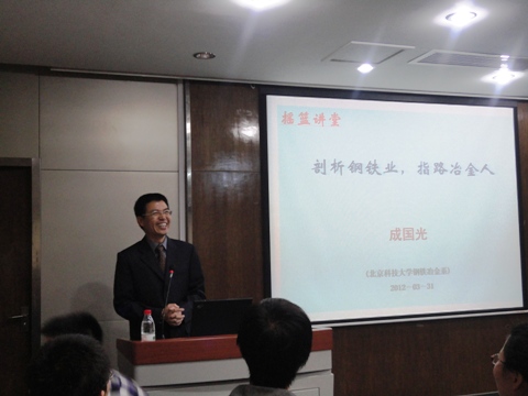 在活动当天,成国光教授用诙谐幽默的语言,首先介绍了当代钢铁冶金业的成长与发展历程,指出这个行业的悠久性和漫长性,鼓舞在场的学生,钢铁企业必将渡过这一时期的低潮。其次,他又和学生们探讨了目前钢铁业所面临的机遇和挑战,以及如何对以后的人生做出合理的规划。最后他又针对学生们提出的问题,结合自己的经历依次做了解答。整场活动在数十次的笑声与掌声中宣告结束。
