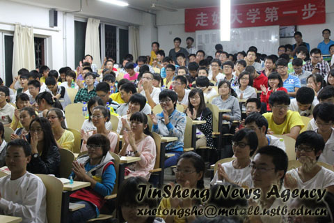 2012年9月21日晚7点,冶金生态楼110室迎来了一个欢乐的夜晚。由院团委学生会宣传部、求是学会以及本科12级年级组举办的题为“走好大学第一步”的迎新晚会在这里拉开了序幕。此次活动是我院本科12级新生首次参加的偷拍