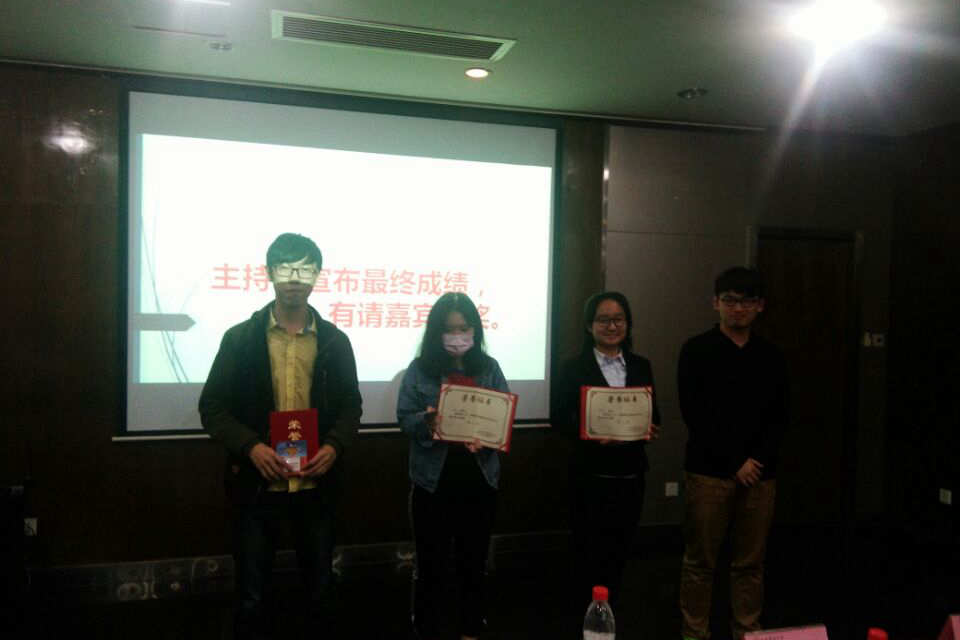 最后焦若萱同学荣获冠军,刘哲同学和李洋同学分获第二、第三名,张健博老师为之颁奖。至此,本届演讲比赛偷拍