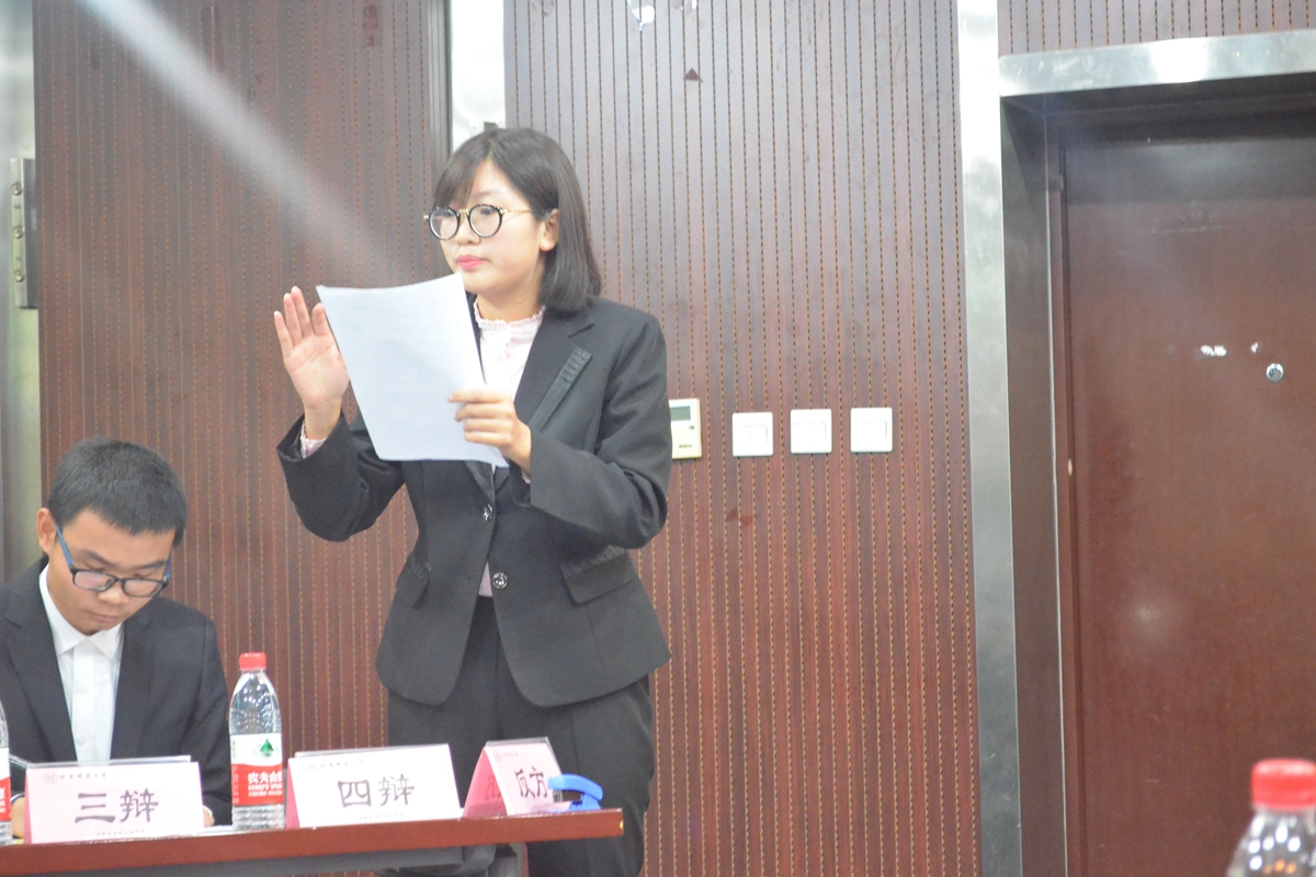 接下来双方二辩和四辩对辩。正方二辩邓皓同学针对宽松式教育有利于培养同学的自主意识和独立人格进行精彩论述;而反方二辩刘依迪同学则针对组织性进行论述,强调宽松式教育缺乏应有的组织性。接着正方四辩李帅同学论述宽松式管理有助于加强学生自我管理能力,发现自身错误,并在学校提供的平台下改正;反方四辩刘哲同学则认为现今的大学生自觉性普遍不高,所以宽松式管理带来较多自由,会使大学生产生自由泛滥,导致他们不能很好地集中精力与学业。双方二辩小结,计时各为两分钟。双方队员对之前的辩论进行总结并引出己方论点。第四项是双方三辩盘问对方一二四辩,计时各为两分钟。正方三辩徐焱东同学和反方三辩陈弘略同学以犀利的语言询问对方辩手,双方队员不差上下。