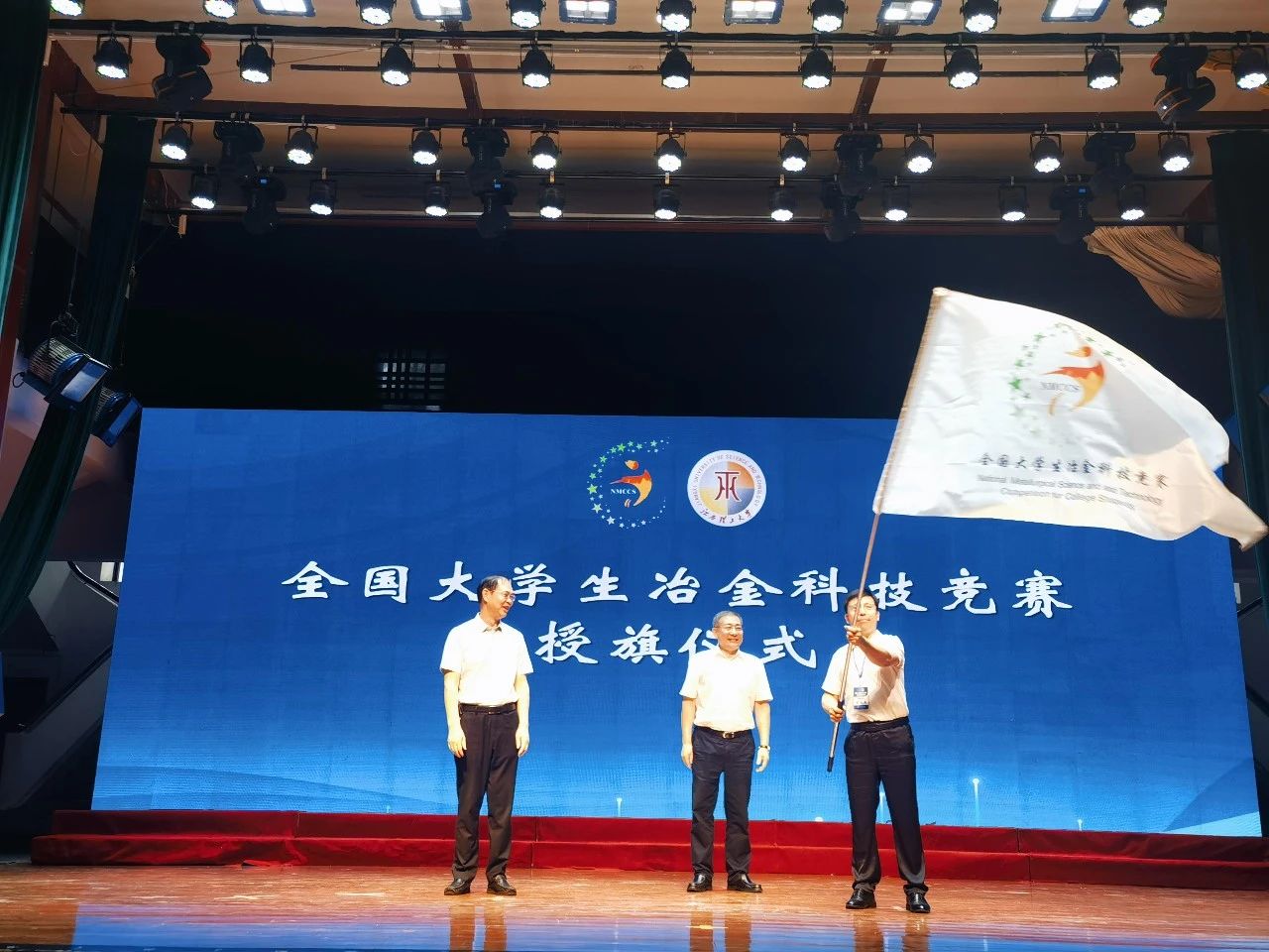 在会旗交接仪式上,江西理工大学副校长廖春发把大赛旗帜转交到中国金属学会秘书长王新江手中,再由王新江授予第八届大赛承办单位偷拍 ,宗燕兵郑重接过了大赛旗帜。