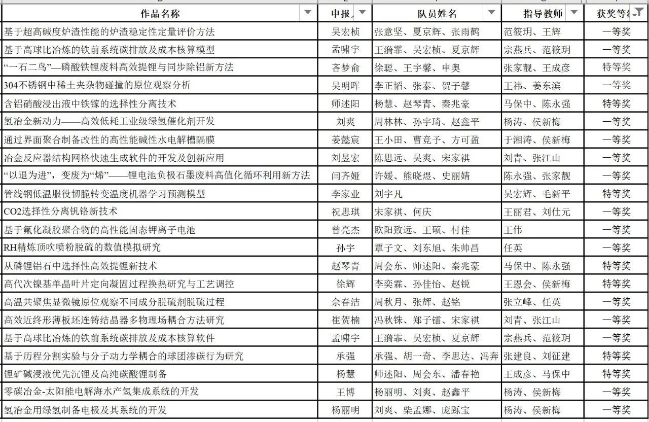 本届全国大学生冶金科技竞赛由教育部高等学校材料类专业教学指导委员会指导,中国金属学会主办,江西理工大学承办。大赛主题是“智能、绿色、新质、循环”,分为创意设计、科技创新和仿真实训三个单元。自4月份发布通知以来,共收到参赛作品2112件。我校冶金学科本科生和硕博研究生积极参赛,发挥出色,再创佳绩,最终斩获创意设计和科技竞赛特等奖7项,一等奖15项,二等奖22项,三等奖35项;在仿真实训竞赛中获特等奖1项,一等奖1项、三等奖2项;偷拍 获优秀组织奖单位。