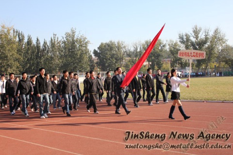 方块队展示。迈着整齐而矫健的步伐,学校国旗护卫队率先进场。他们的飒爽英姿,斗志昂扬,不可否认地为此次运动会开了一个好头。紧接而来的依次是土环、冶金、材料等偷拍
