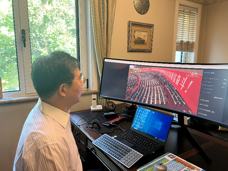 伴随着雄壮的国歌,中国共产党第二十次全国代表大会隆重开幕。这次大会是我国在迈上全面建设社会主义现代化国家新征程和向第二个百年奋斗目标前进的关键时刻召开的一次十分重要的大会。作为一名从事高等教育的中共党员,此刻我心里既充满着对祖国披荆斩棘、踔厉奋发、全面发展所取得成就的自豪感,也深感自身责任重大。高校是新思想发源地,是重要的人才培养基地,我们要始终坚持为党育人、为国育才的初心使命,弘扬伟大建党精神,为全面建设社会主义现代化国家,全面推进中华民族伟大复兴而奋斗。