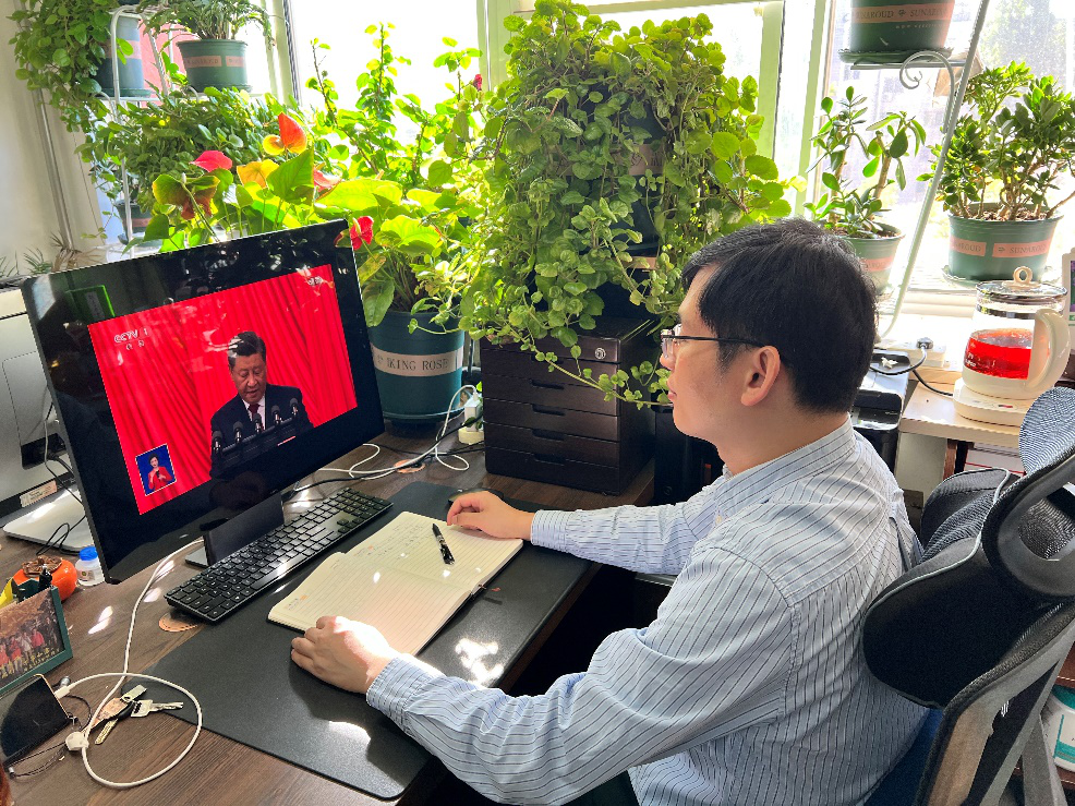 今天上午观看了党的二十大开幕会直播,我深受鼓舞。本次大会是在全党全国各族人民迈上全面建设社会主义现代化国家新征程、向第二个百年奋斗目标进军的关键时刻召开的一次十分重要的大会。大会上,习近平总书记代表第十九届中央委员会向大会做出了重要报告。在过去的五年,全党在以习近平同志为核心的党中央的坚强领导下,实现了脱贫攻坚战的全面胜利,对新冠疫情的有效控制,坚定地维护国家主权完整。在迈向第二个百年目标的重要时刻,身为中共党员和基层教师,应当贡献一份力量,为本科生、研究生的学习成长保驾护航。牢记习近平总书记的殷切嘱托,培养更多听党话、跟党走、有理想、有本领、具有为国奉献钢筋铁骨的高素质人才。