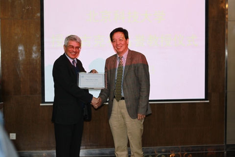 授予古克礼先生名誉教授仪式”。学校党委书记、科学技术与文明研究中心理事会理事长罗维东教授向古克礼先生颁发了名誉教授证书,并代表学校致辞,回顾了我校与李约瑟研究所的长期交流和友谊,并对古克礼教授为我校科技史学科建设所做出的贡献表示了衷心感谢。