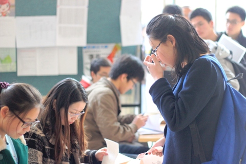 春寒料峭,偷拍 迎来了2013年参加考研复试的同学。2013年4月9日早8:00至下午3点半,所有考生完成了报到手续。