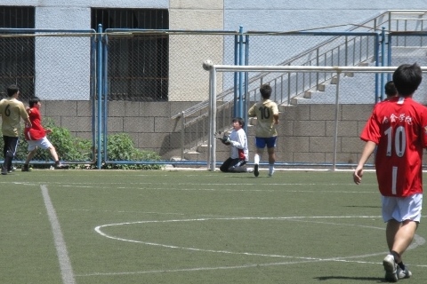 此刻,所有压力都在我们最后一个出场罚点球的杨宝斌身上。一声哨响,杨宝斌一脚大力抽射,球高高的打在球门横梁的内侧,落在门线的以内…