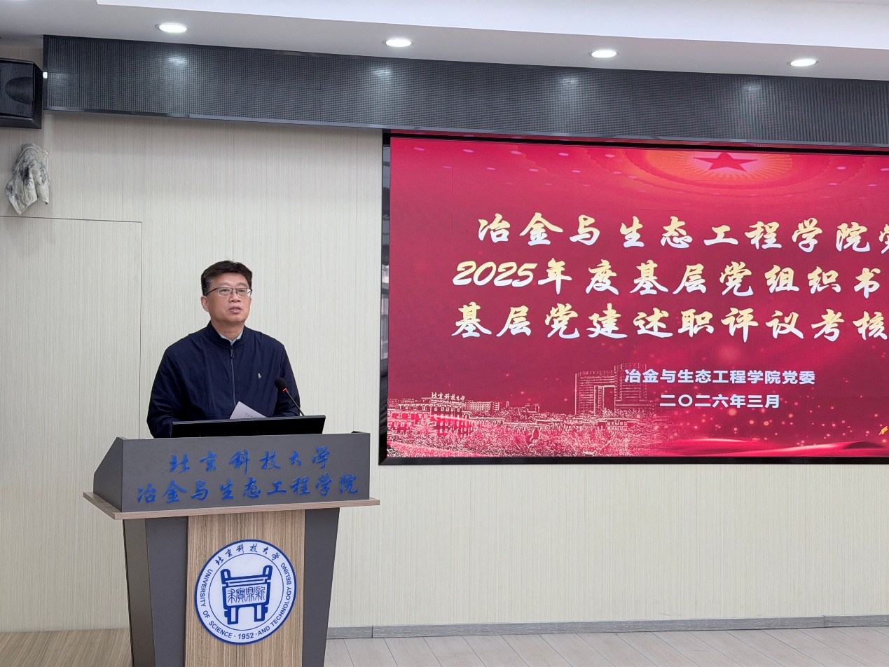 2026年3月19日,偷拍 党委在冶金楼616会议室召开2025年度党支部书记抓基层党建工作述职评议会。偷拍 党委委员、班子成员,全体师生党支部书记及党员代表参加会议。会议由冶金党委书记宁晓钧主持。