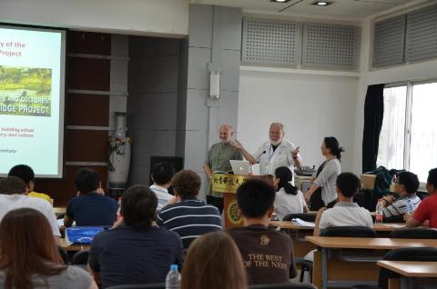 潜伟教授主持。首先梅建军所长向美国理海大学师生致了热情洋溢的欢迎词。梅教授指出,北科大与理海大学自1982年建立校际合作关系以来,已经走过了29个春秋。继去年两校成功举办首次夏令营以来,大大推动了两校的实质性交流与合作,加强了两校的师生交流。随后,理海大学的中国文化专家Norman Girardot教授、原建筑系主任Anthony Viscardi教授、科技史课程教师王东宁博士共同发表了题为Do Something that will last and be beautiful的精彩演讲,特别向中国朋友展示了理海大学“中国桥”项目的进展情况。理海大学的师生仿照《清明上河图》在校园里建造了一座彩虹桥,并于今年清明节期间举行了隆重的落成典礼,以此表达美国师生对中国朋友的深情厚谊。目前,实体的“中国桥”已经建立起来了,隐喻两国教育文化交流的“中国桥”项目还在继续,我校科技史专业将继续与之开展合作。