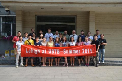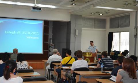 -美国理海大学夏令营”(Lehigh at USTB―Summer 2011)开营典礼在国际合作与交流处多功能厅隆重举行。国际处郭侃俊副处长,冶金与材料史研究所梅建军所长,我校科技史、生态学、工业设计各专业的师生及理海大学代表团成员共三十余人出席了典礼。