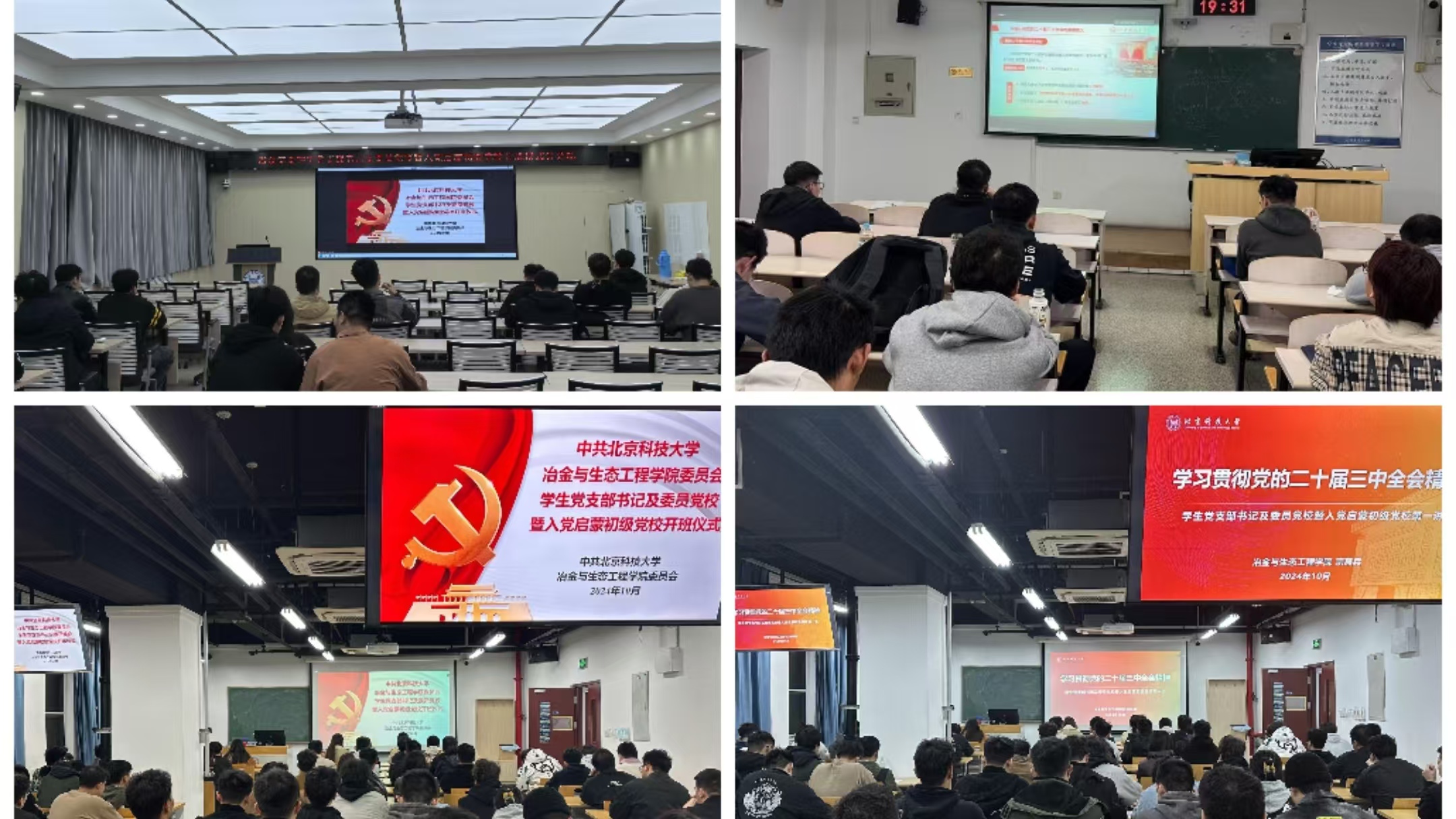 为深入学习宣传贯彻习近平新时代中国特色社会主义思想,贯彻落实党的二十大和二十届三中全会精神、全国教育大会精神,学习贯彻习近平总书记给我校重要回信精神,高质量落实学校党委巡察反馈意见,持续深化“钢筋铁骨”特色育人模式,挖掘冶金“钢魂”精神内涵,着力提高学生党支部书记及委员的业务水平,切实增强支部战斗堡垒作用,加强对申请入党学生的思想引领和意识形态导向工作,做好学生入党启蒙教育,10月22日晚19:00,偷拍 党委学生党支部书记及委员党校暨入党启蒙初级党校开班仪式顺利举办。