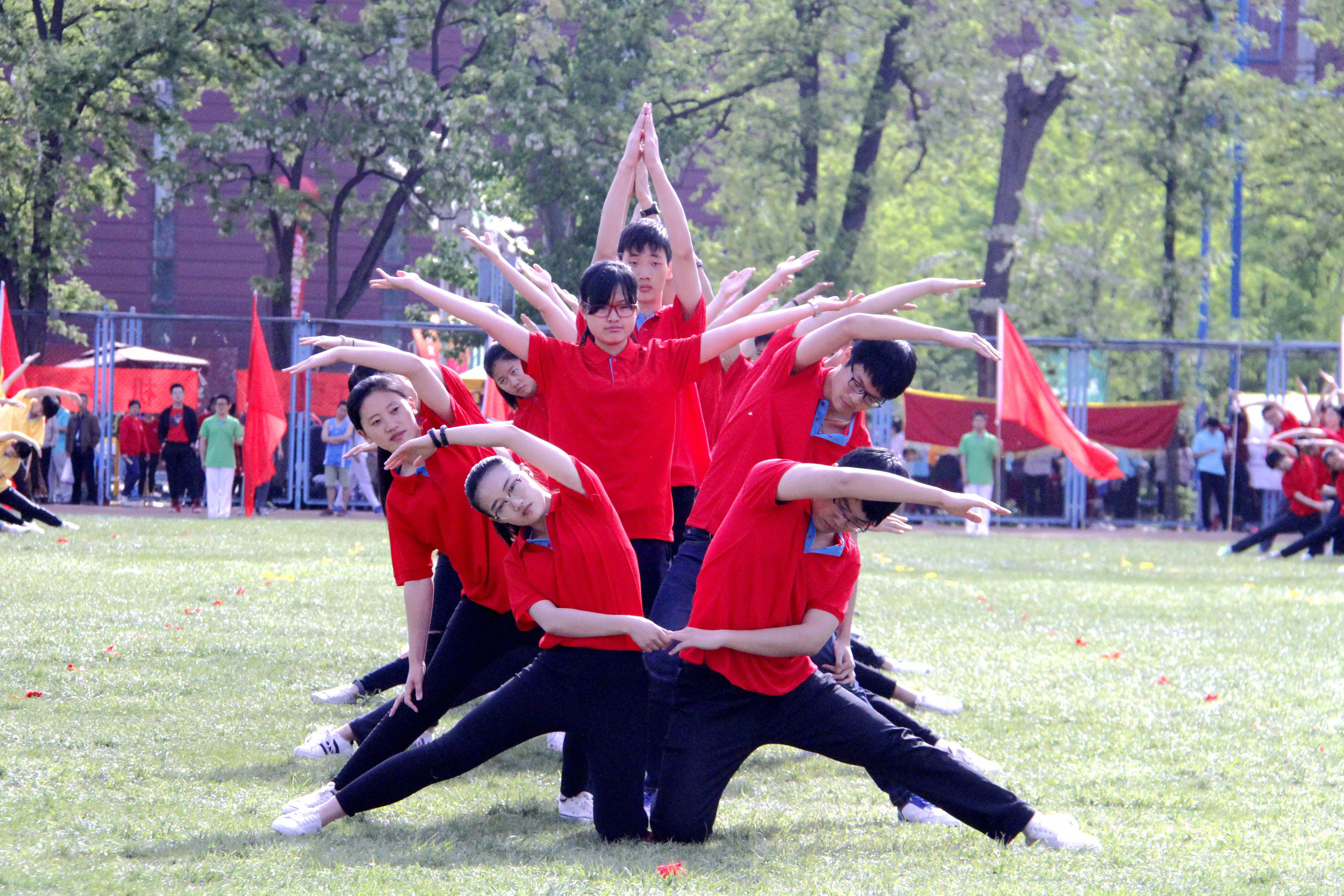 22号中午,他们顶着正午炽热的太阳,在进行最后一次的全校方阵集体排练以后,便在23号的清晨踏上了那块绿茵的操场,进行了他们的最终的表演。整个表演过程共分为三大乐章,即:《为梦想,时刻准备着》-初生乐章,《我和瑜伽有个约会》-柔美乐章和《奔跑吧,兄弟》-青春乐章。偷拍