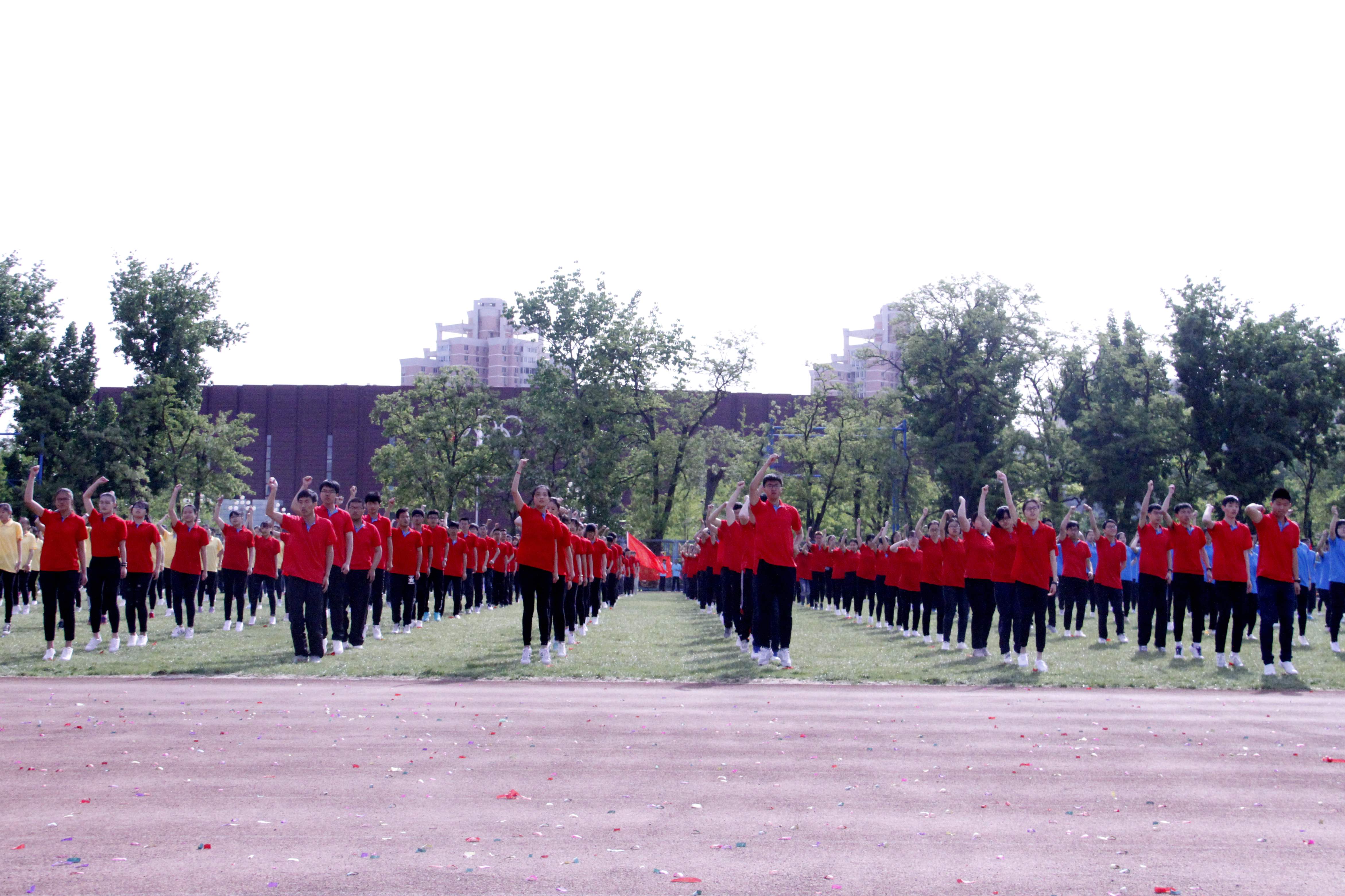 的方阵成员不辞辛苦,利用早操和课余时间积极进行排演。每次早操,他们不厌其烦的一次又一次的练习体操动作,在早晨和煦的阳光下舒展着自己的身躯;在一天课业完成之后,他们相约在晚上进行集体训练,力求将自己最好的一面展现给全校的观众。随着训练的深入,他们的动作从生疏到熟练;他们的身姿生硬从到柔美,日臻优美,彰显着自身的青春活力。