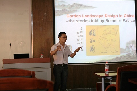生态专业的彭奎老师作了关于“中国古典园林”的讲座,他针对我国著名园林――“颐和园”的景观设计为大家作了详细介绍。随后,来自美国里海大学的Brandt教授生动的讲述了关于“中西传统材料与工艺”这一研究课题。讲座之后,来自两国的学者及学生们针对讲座内容展开了激烈讨论,两位学者通俗、生动的阐述让在座的学生受益颇多。
