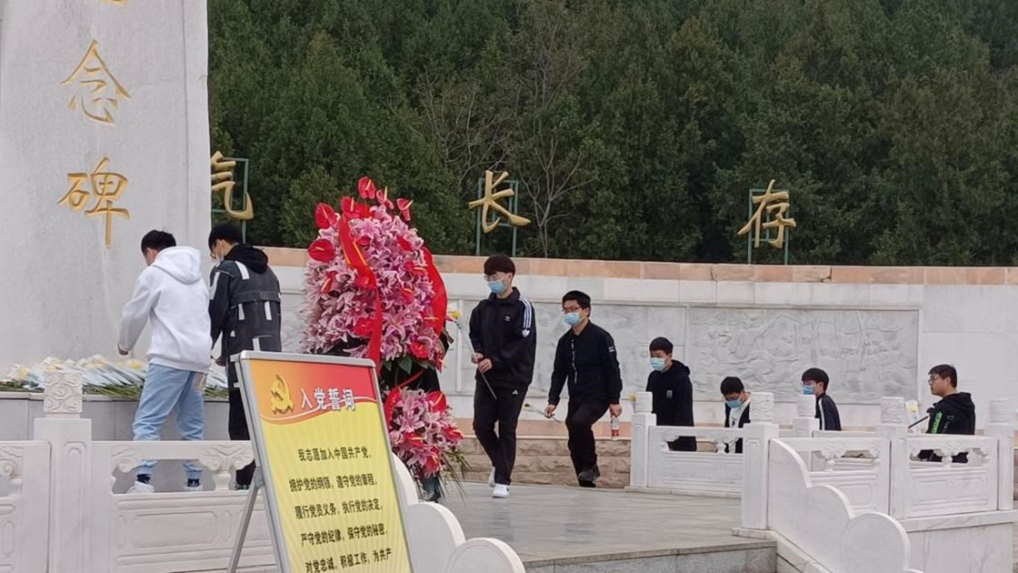 在巍然屹立的烈士纪念碑前,在庄严肃穆的革命纪念馆内,师生党员面向党旗,重温入党誓词,坚定理想信念,牢记初心使命。