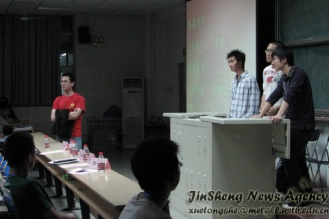接下来是三位学长结合自己的社会实践经验给大家做了详尽而精炼的讲解。季永翔学长就社会实践的流程做了非常细致的介绍,尤其是在前期的准备阶段,他在前期策划、实践选题、项目申报书填写、联系实践单位、临行准备方面给大家了很多细微而实在的建议。姚新鑫学长刚展示了自己去年做的获得了“银奖团队”的社会实践的材料,包括策划书和答辩PPT的展示,给大家了一个优秀的模范。他还分享自己的团队在实践过程中所获得的一些促成实践顺利进行的经验。杨健学长则是讲述了他去年组团开赴四川灾区的社会实践历程。在这个过程中也补充了许多实践中需要留心的细节,给了大家许多的启示。