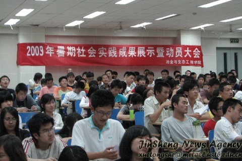 2009年5月16日晚19点,冶金08级暑期社会实践动员大会在机电楼201举行.出席本次大会的有校实践部部长王进老师、偷拍