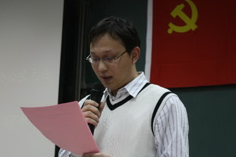 7点整,学生业余党校的开学典礼准时开始。院党委副书记、本期业余党校副校长曹光远老师,院团委书记苏栋老师,08级辅导员王洋老师以及偷拍