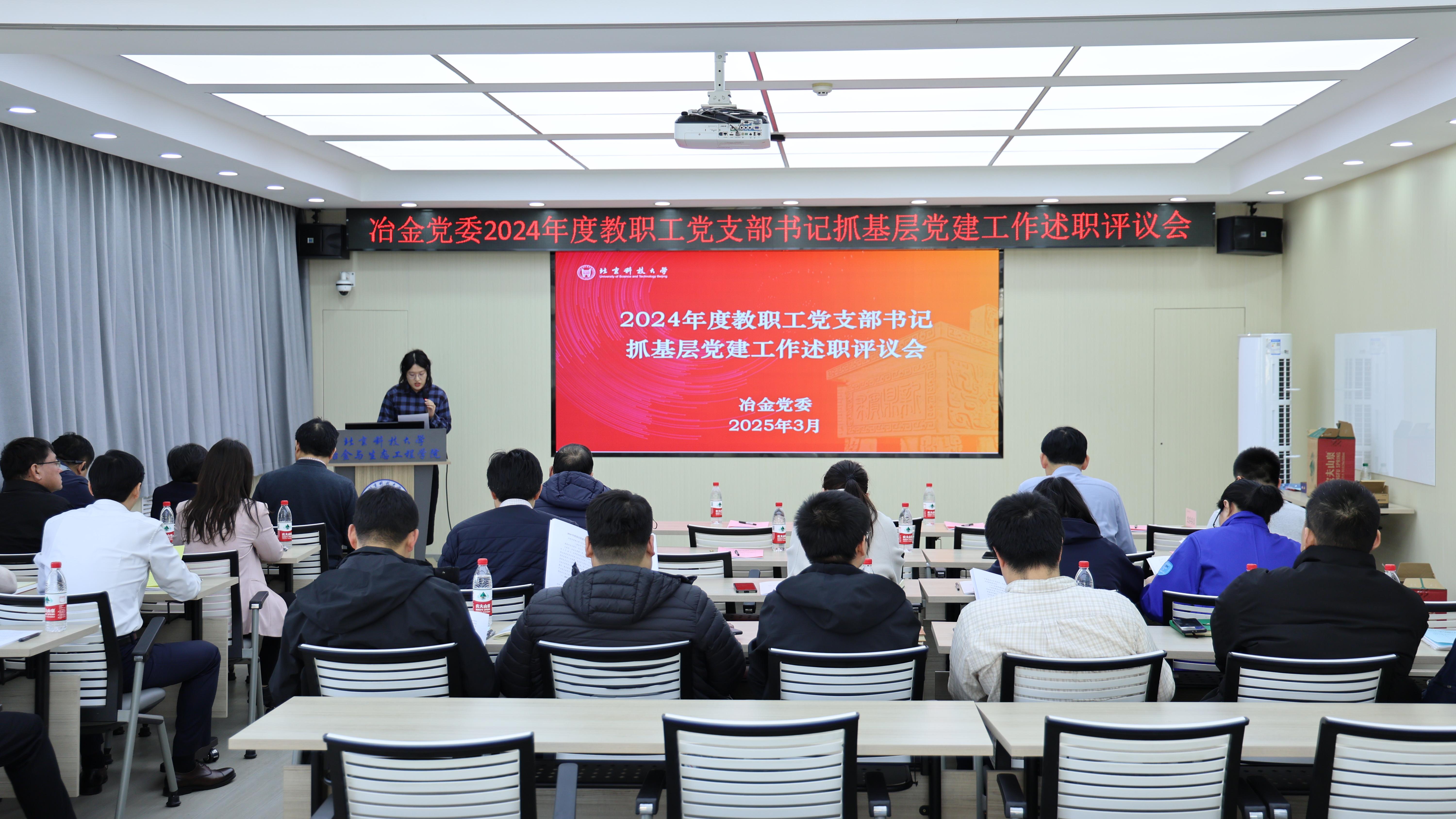 宗燕兵首先对各位党支部书记的辛勤工作表示肯定,并逐一进行了点评。宗燕兵指出,2025年是“十四五”收官之年,也是“十五五”谋划之年,是落实冶金党委第七次党代会精神的重要之年。学校提出“深入实施面向2025世界一流大学‘钢铁脊梁’奋进计划”,冶金党委、三家单位和冶金学科将迎来冶金学部成立、冶金全重中期检查、双一流学科评估、本科教育教学审核评估、巡察整改验收等重点工作。希望全体党支部书记坚持用习近平新时代中国特色社会主义思想凝心铸魂,推动“一融双高”建设,将党的建设与“钢魂”精神融汇于人才培养全过程;夯实党建基础,强化党支部政治功能和组织功能,加强冶金特色思想政治教育;加强纪律建设,全面压实从严治党政治责任,巩固深化党纪学习教育成果。在冶金党委和各行政单位的带领下,抢抓机遇、乘势而上、团结进取、真抓实干,奋力谱写教育强国建设北科冶金新篇章。