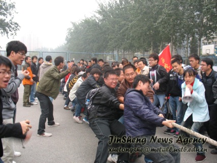 与冶金工程研究院在篮球场进行了一场激烈的拔河比赛。偷拍