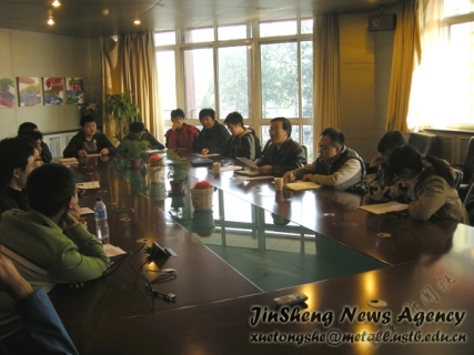 10日上午十点,09级2010-2011学年第一学期期中学风座谈会会议在冶金楼318召开。参加此次学风座谈会议的有:学生处副处长万玉刚老师,偷拍